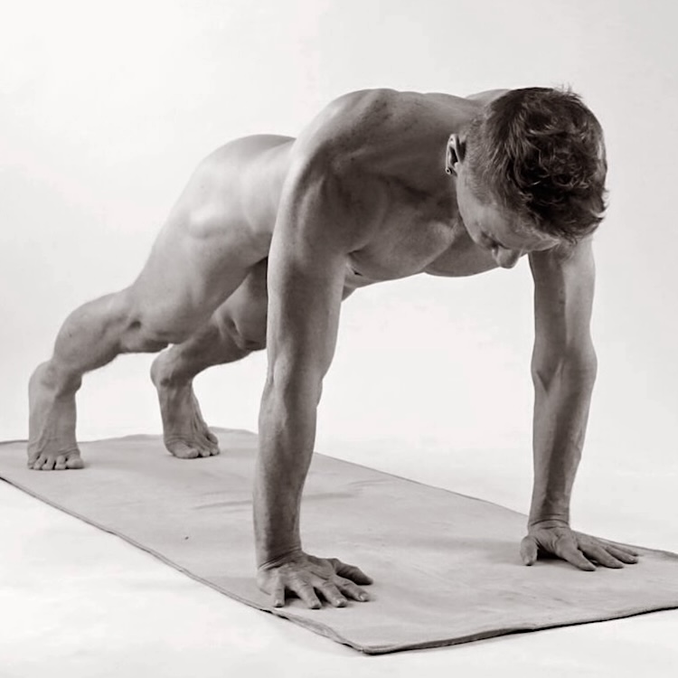 The class begins, and a gently spoken instructor named Tony puts us through our paces. I am aware of how embarrassed I am by my nakedness and that of the men around me. We’re instructed to hang forward, then move through a vinyasa flow ending in a position called ‘down dog.’ For anyone unfamiliar with yoga, down dog requires placing your hands and feet on the mat while pivoting at the hips. It’s quite a revealing position. When a man executes the pose naked a few feet from your face, little is left to the imagination.
