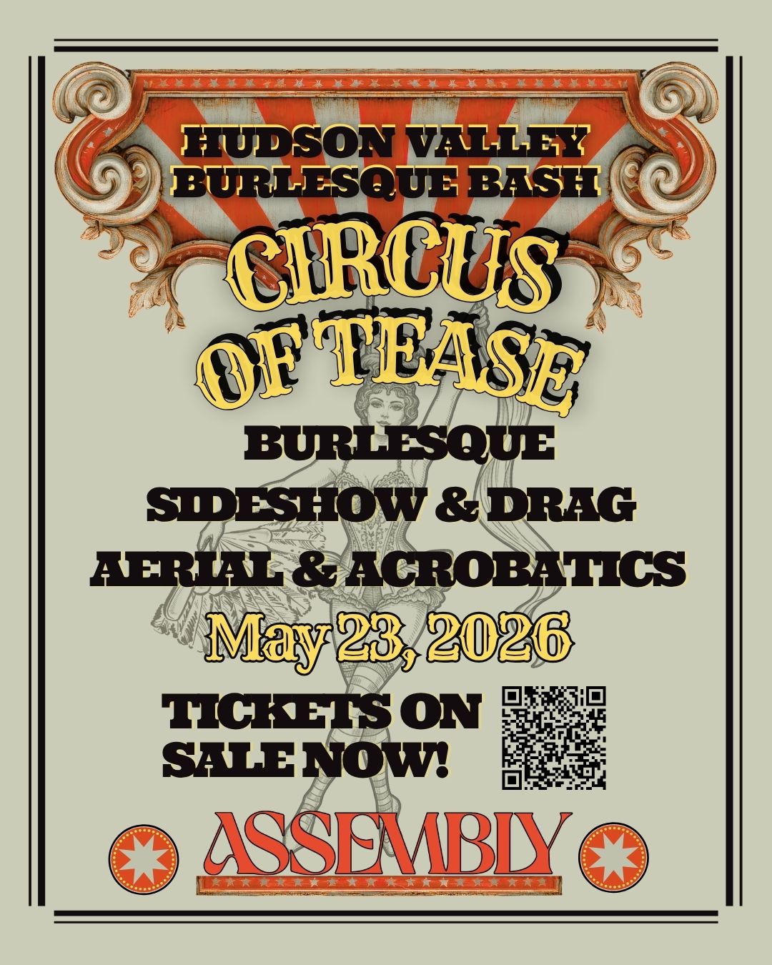 $25 – $60Join us May 23rd for the CIRCUS OF TEASE! Don’t miss out on the second annual Hudson Valley Burlesque Bash: experience the Art of Tease with a show stopping summer circus.