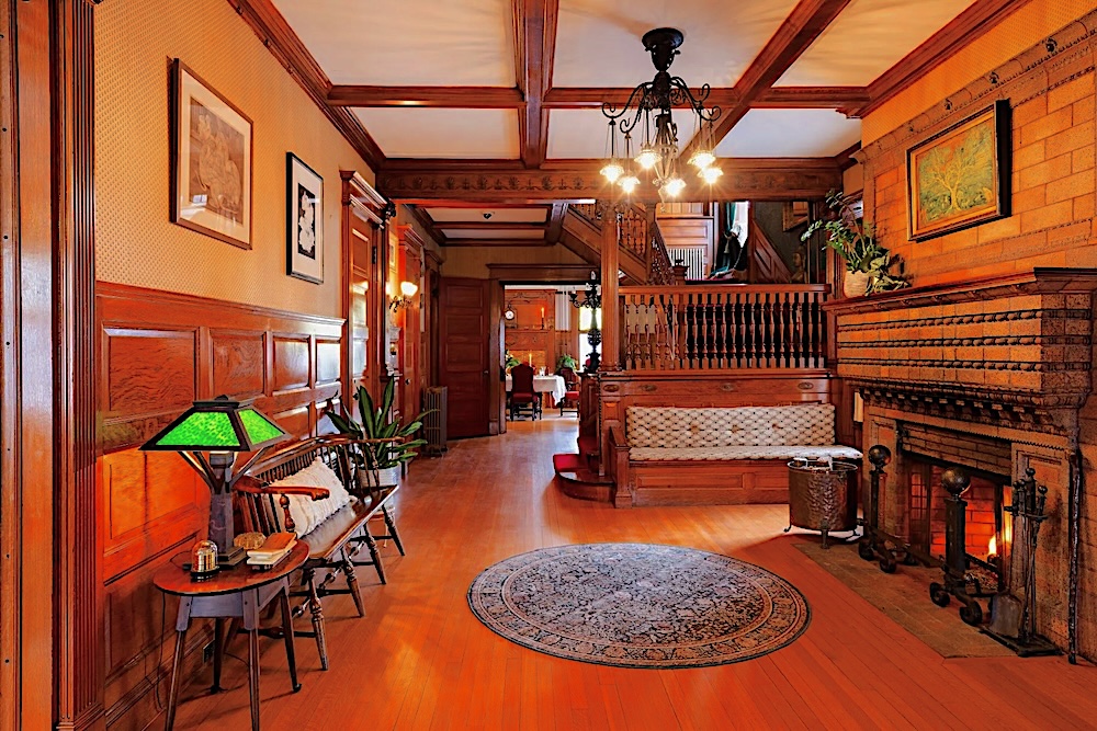 Commissioned by George and Emma Coykendall, prominent figures of the Hudson River’s industrial era, the home showcases craftsmanship that cannot be replicated today. Original details remain remarkably intact, including pristine oak pocket doors, more than two dozen stained-glass transoms, hand-carved woodwork, ash floors, preserved 1896 wallpaper and drapery, and multiple stone and wood fireplaces.